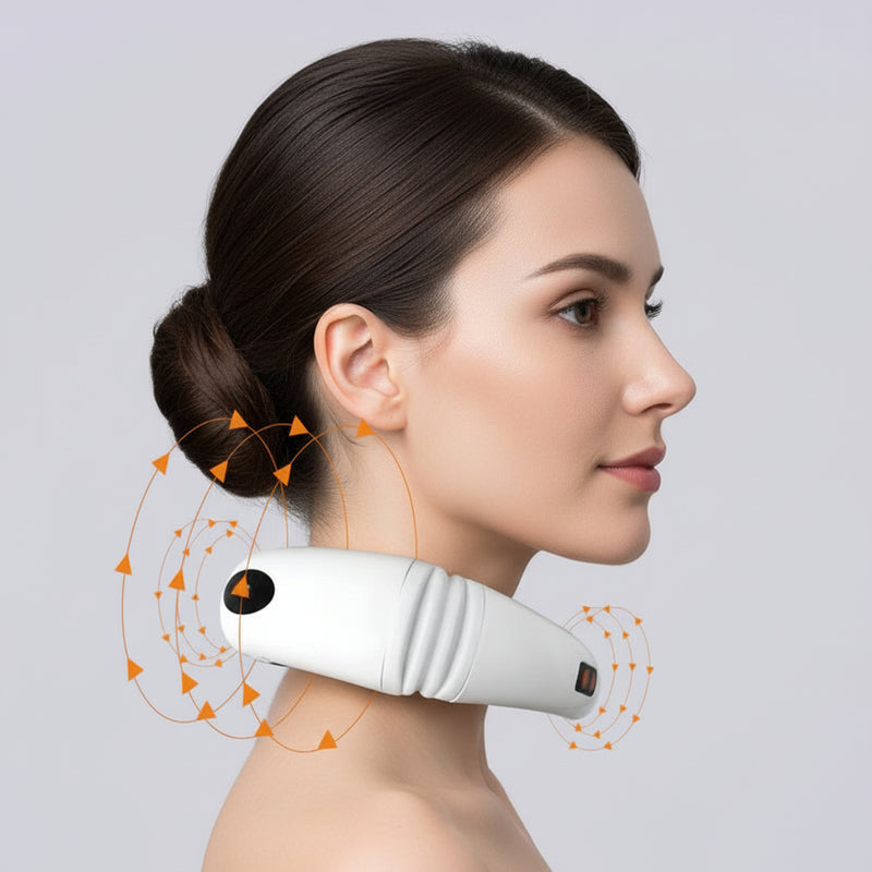 The Smart Neck Massager uses a blend of electric pulse stimulation, infrared heat, and magnetic therapy to penetrate deep into muscle tissue, improving blood flow and easing stiffness.